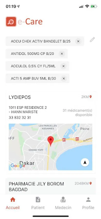 Providing in real time from your smartphone, tablet, computer, the availability of a drug from the pharmacies closest to you.