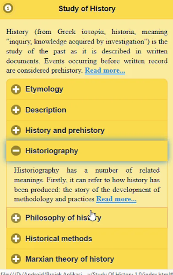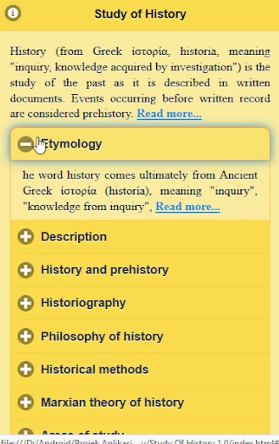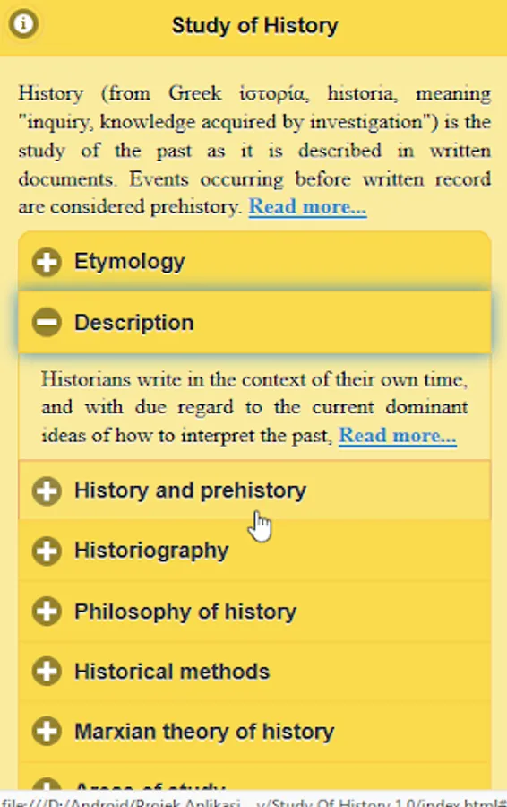 History (from Greek ???????, historia, meaning "inquiry, knowledge acquired by investigation") is the study of the past as it is described in written documents. Events occurring before written record are considered prehistory. It is an umbrella term that relates to past events as well as the memory, discovery, collection, organization, presentation, and interpretation of information about these events. Scholars who write about history are called historians.