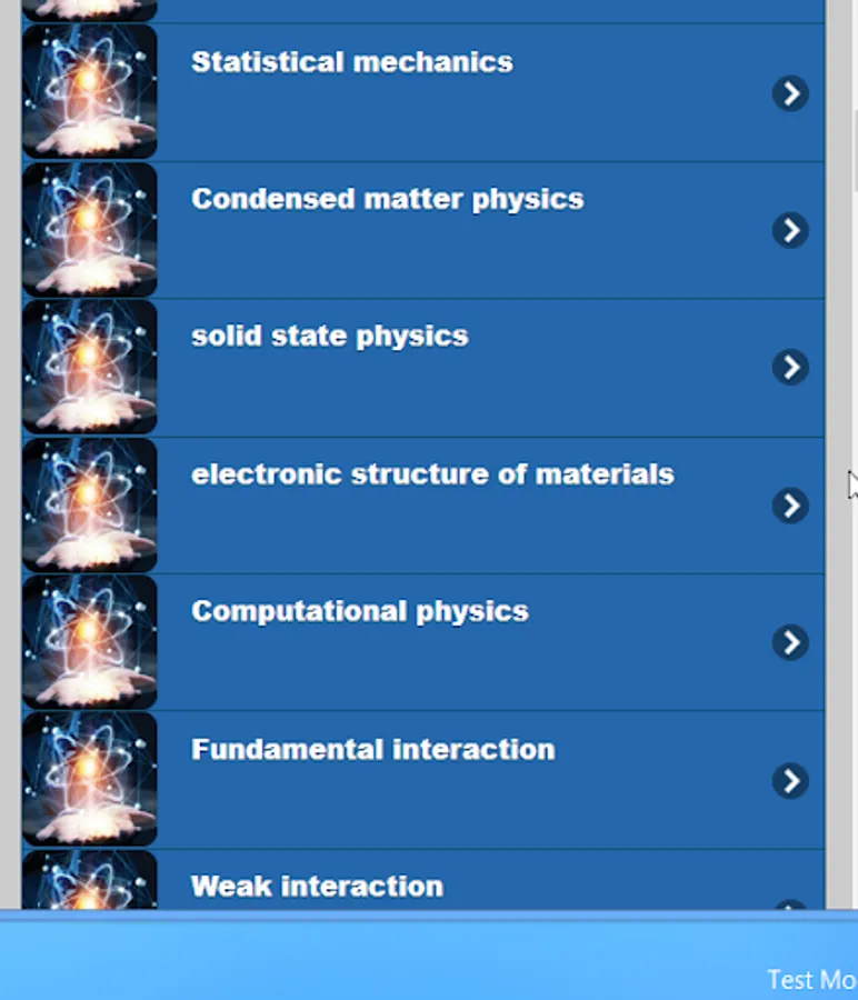 - Condensed matter physics (including solid state physics and the electronic structure of materials)