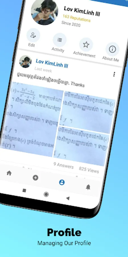 with a convenient method to ask and share the mathematics solution on the Internet. It provides many features that allow users to upload pictures, input math signs or simple text and manage their data.