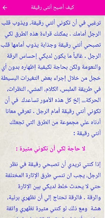 Spread love among people, all people and your family especially, and discover the positive qualities that you are distinguished by and strengthen them in yourself, and try to get rid of all your qualities that you consider negative, and always be positive, and be active, informed, educated, and with simple principles, and we will learn in this application more tips That will make you a perfect girl or woman loved by all people.