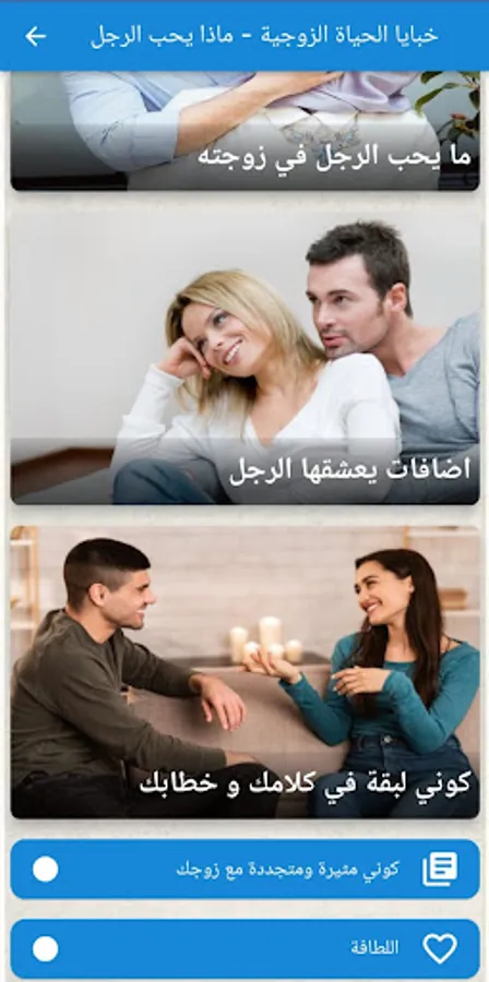In the application of married life, we offer you the most prominent articles that help the spouses strengthen their relationship and answer any question they have