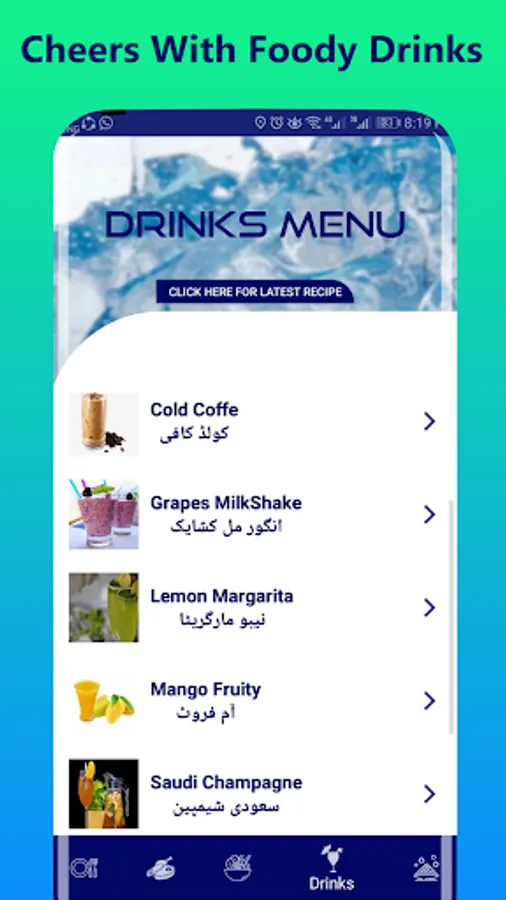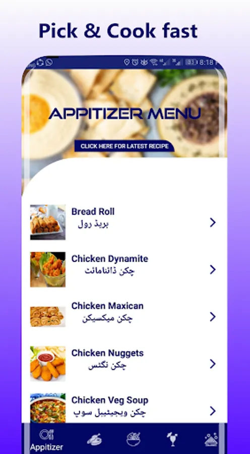 • View new recipes easily by clicking on button "Click Here For Latest recipe ".