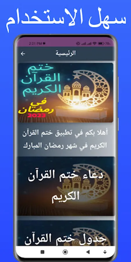 In this application, we offer you an opportunity to complete the Qur’an in Ramadan, as we present this application in a simple and easy way to complete the Noble Qur’an in the month of Ramadan throughout the month of Ramadan 2023, which is divided into thirty days in the month of Ramadan 2023. In addition to the supplication for the completion of the Qur’an.
