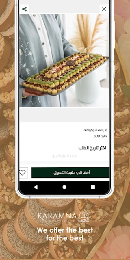 كرمنا للضيافة، متخصصة في مجال الضيافة تتميز بسجلها الحافل وخبرتها الواسعة في مجال الضيافة بمختلف فئاتها ، وبكوادرها السعوديةكما تقدم العديد من ضيافات الحلويات والموالح والمشروبات كما تقوم بتنظيم الحفلات والمناسبات بتوفير فريق متدرب ومجهز لتلبية جميع متطلباتكم وخدمتكم في مناسباتكم من تقديم وتنظيم