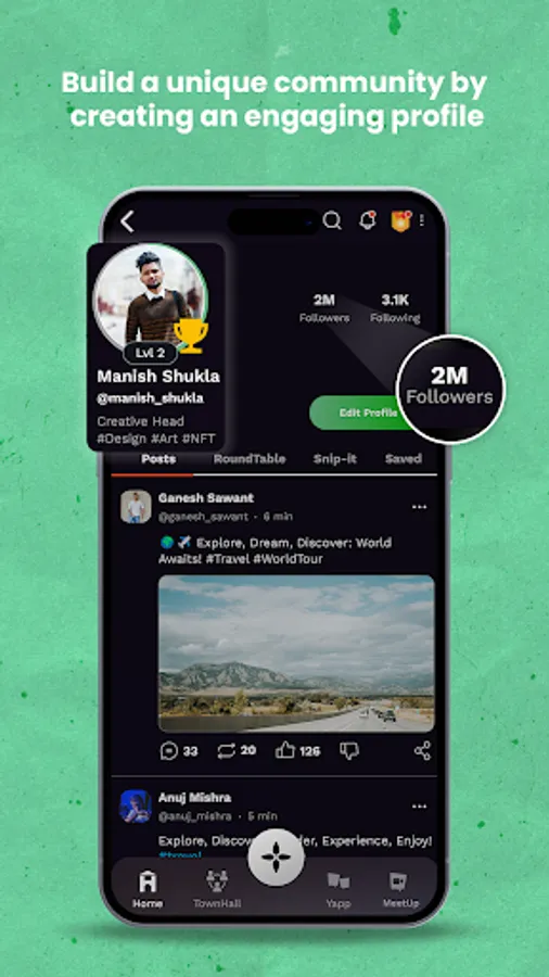 1. Interact with like-minded people using our 'TownHall' and engage with posts.