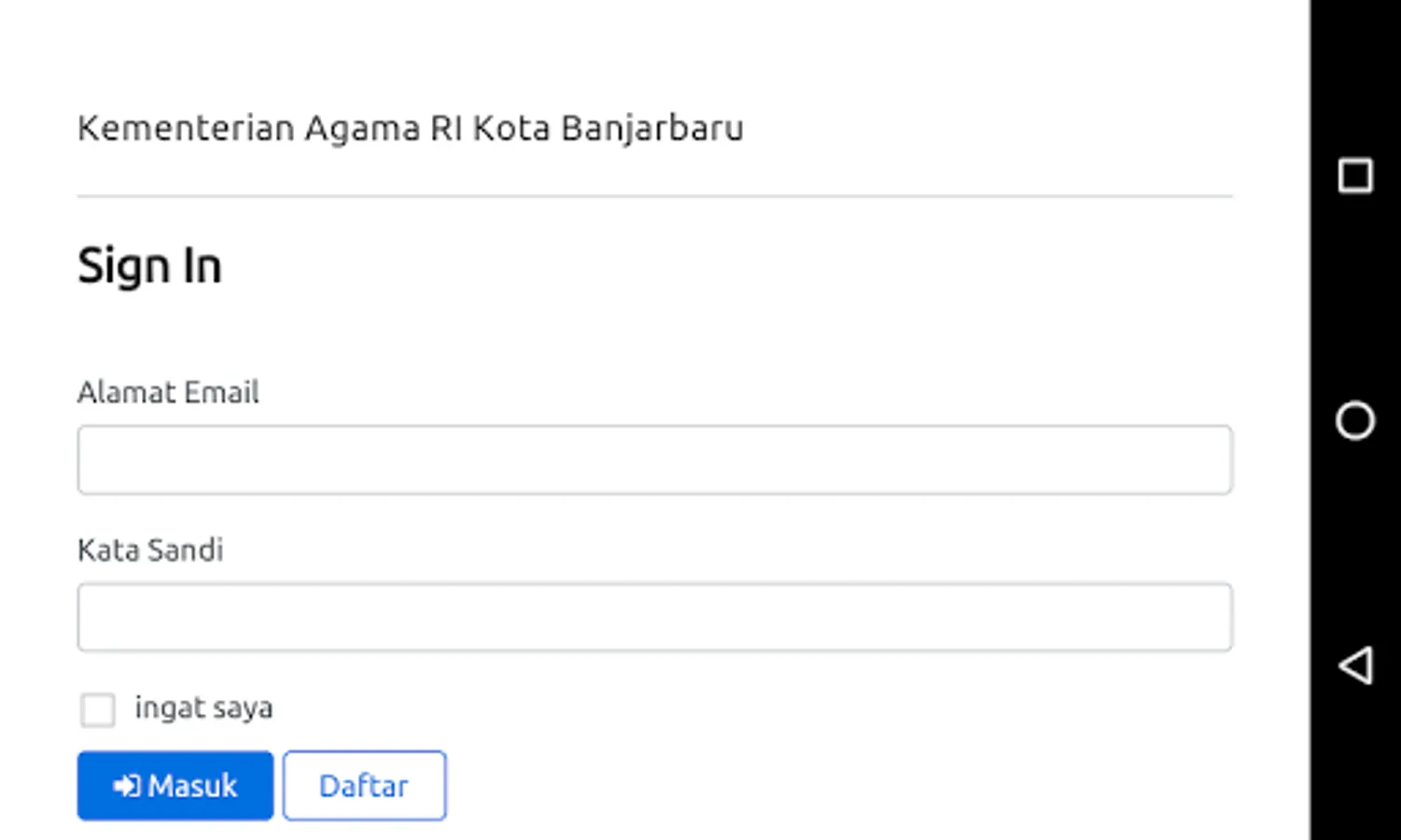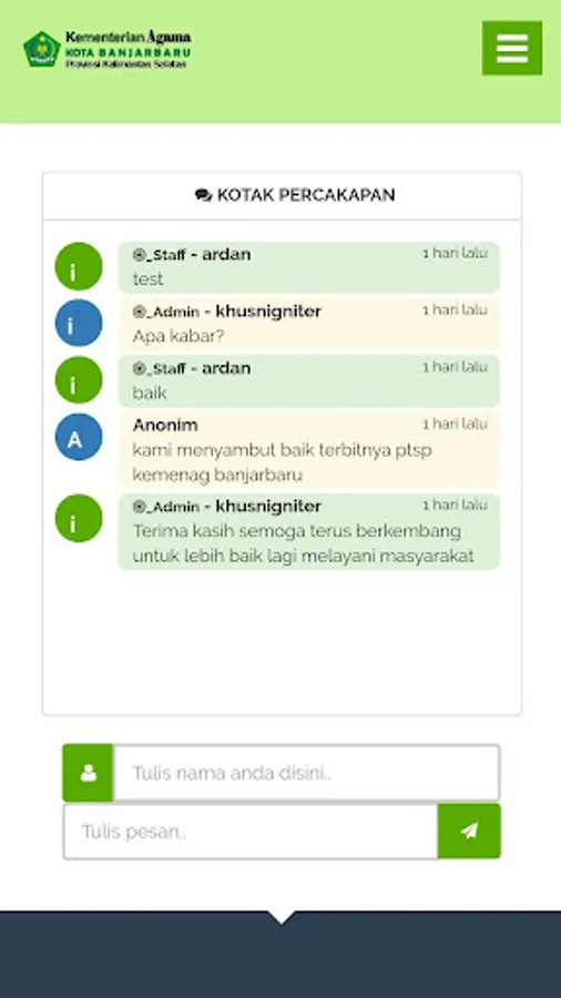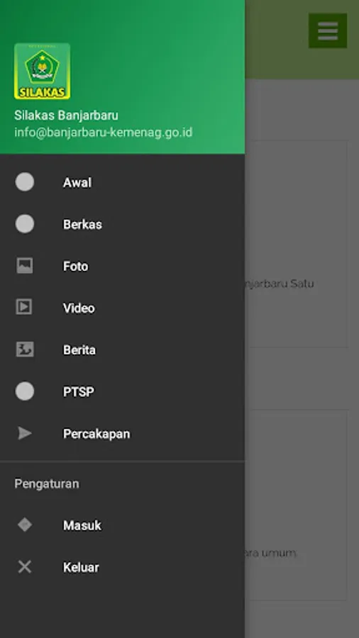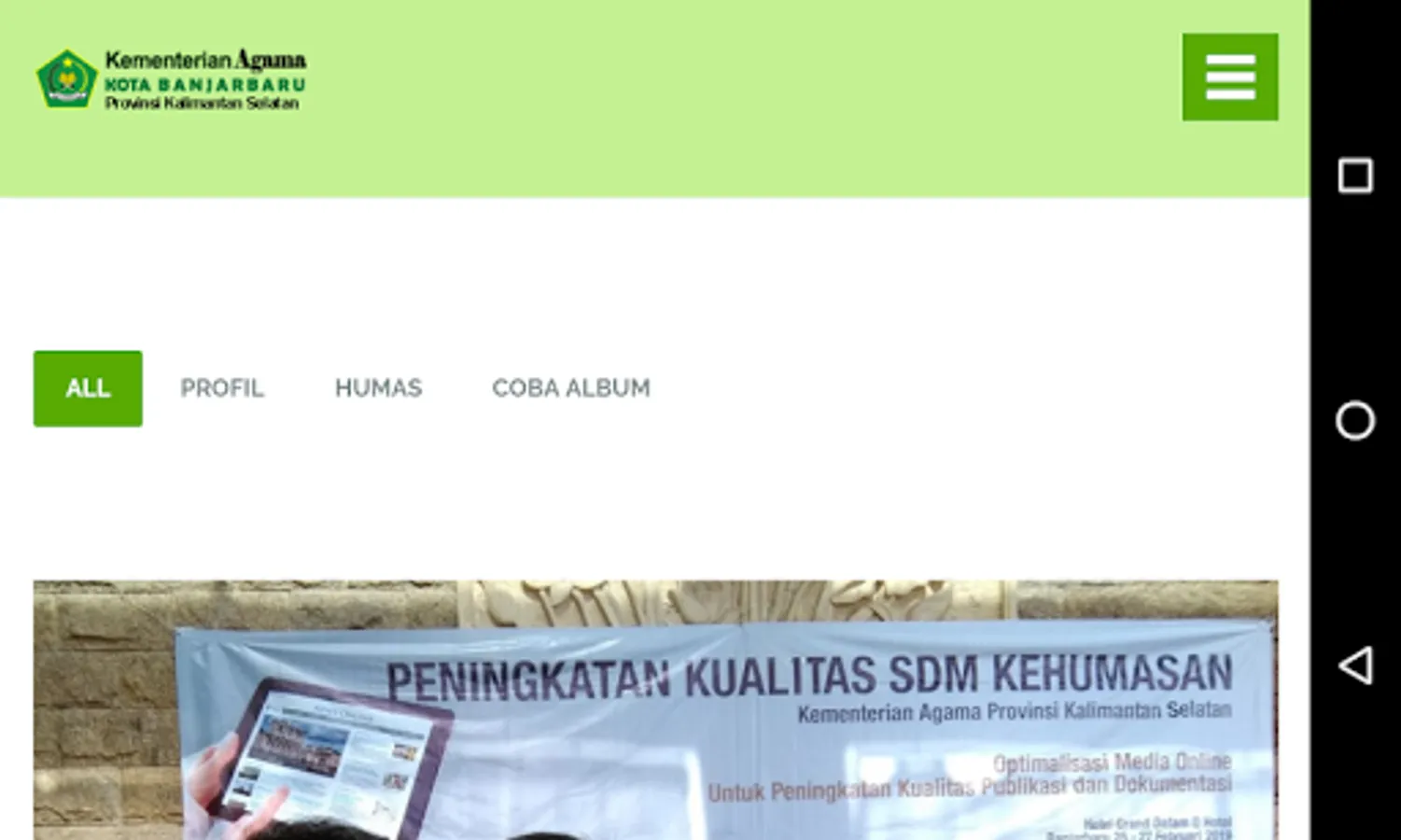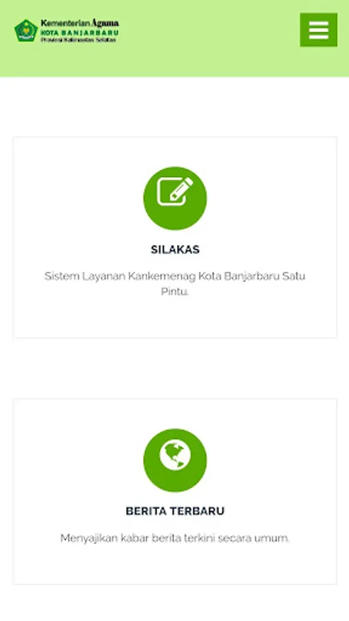 Displays representatives of modules in the application of the Ministry of Religion of the Republic of Indonesia Banjarbaru City Office (Silakas Banjarbaru).