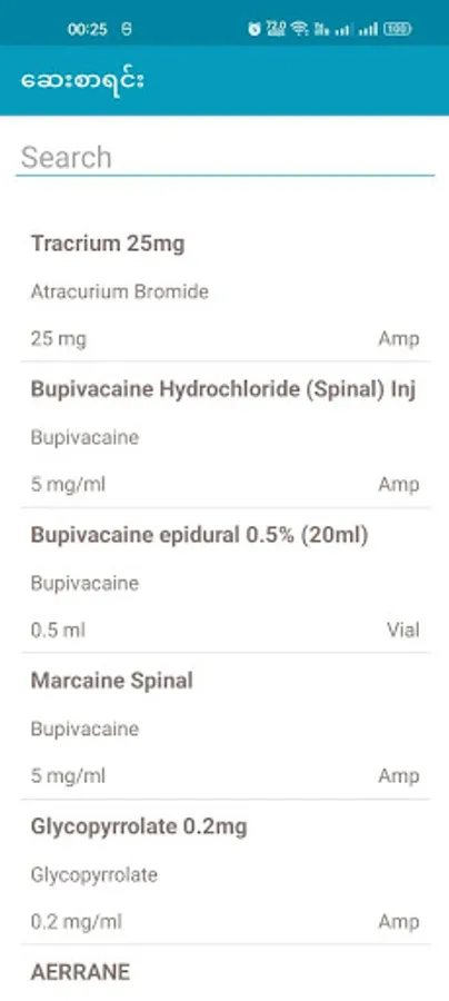 ဆေးဝါးများကို စာရင်းပြုစုပေးထားပါသည်။