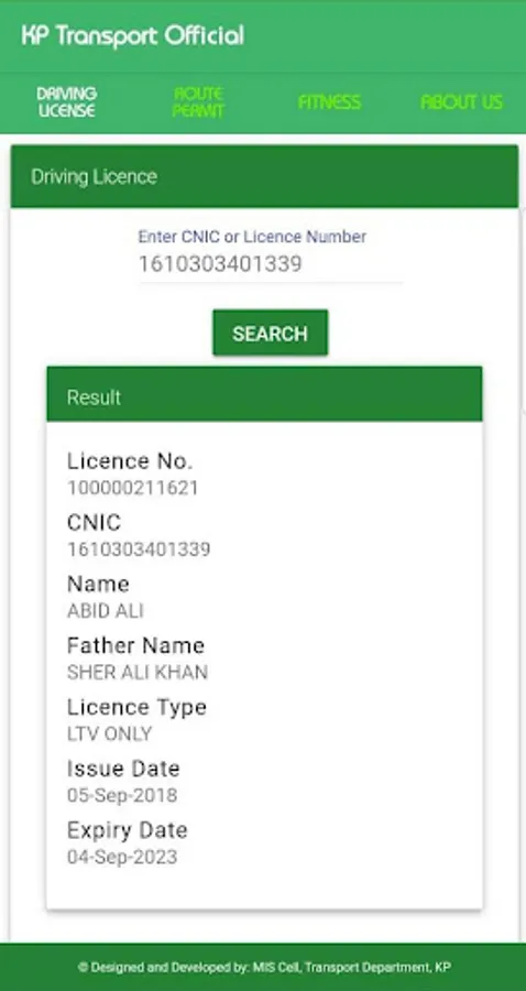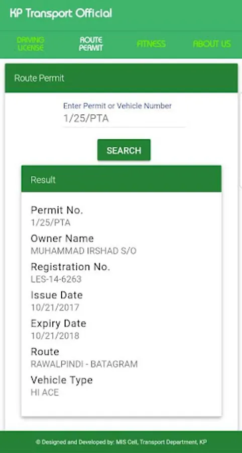 Official App from Directorate of Transport and Mass Transit Khyber Pakhtunkhwa for the verification of