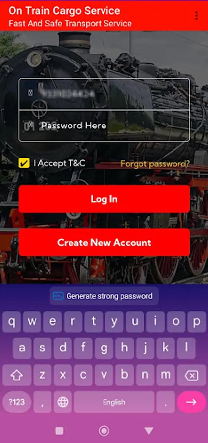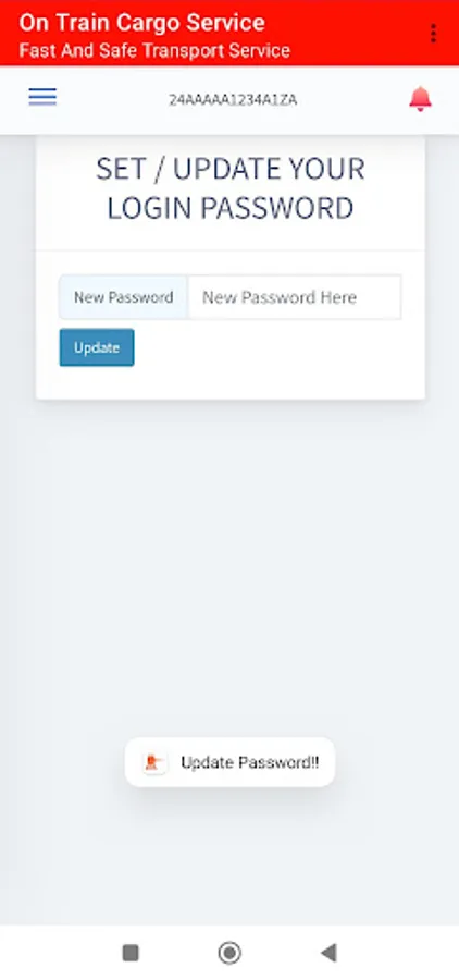 Contact On Train Cargo Service Team for get your credentials with Temporary Password.