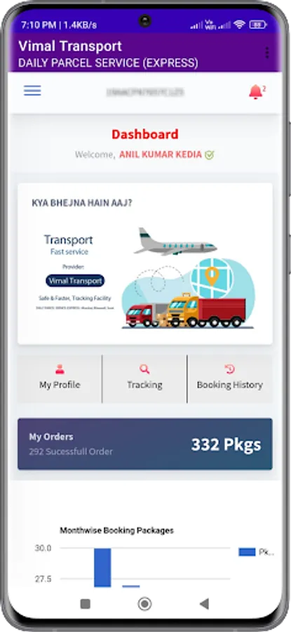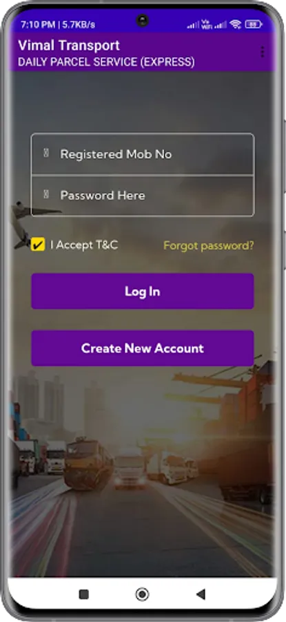 Contact Vimal Transport Team for get your credentials with Temporary Password.