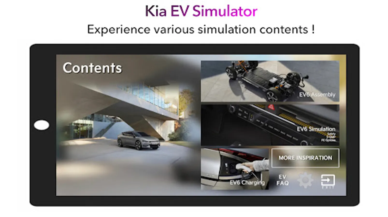 You can assemble a virtual vehicle and easily understand the technical content of an electric vehicle through simulation. You can experience various contents such as electric vehicle FAQ, charging simulation, and E-GMP structure.