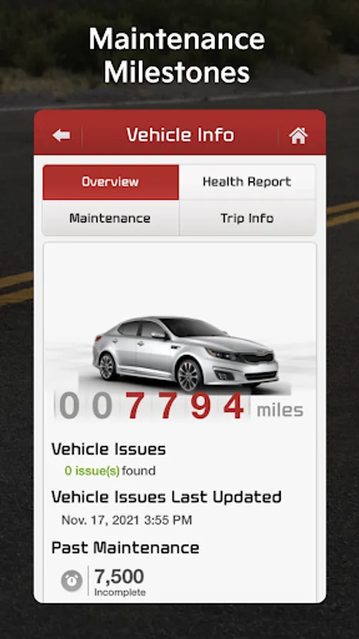 1. Vehicle Diagnostics: Diagnose whether problems exist within major vehicle systems. If an abnormality exists, you can call Kia Roadside Assist or schedule a service appointment with your Kia Dealership directly from the vehicle or using the UVO app.