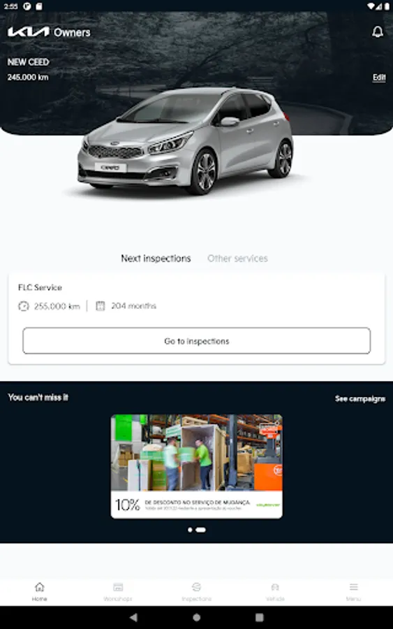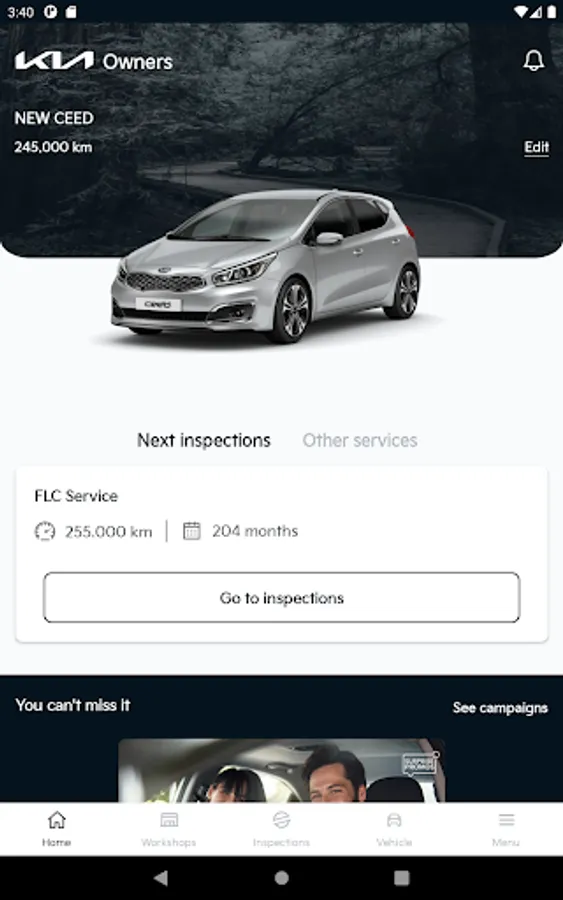 Maintenance service and digital stamp. Keep your Kia’s servicing schedule up to date, thanks to the maintenance programme integrated in the app. Ask for a service appointment.