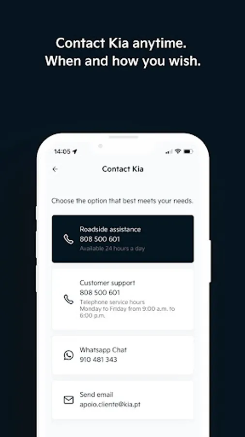 Find an authorised Kia Workshop or Dealership using the app’s map or powerful search engine.