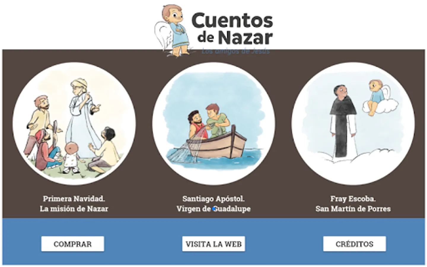 In a day of hustle and bustle in the sky a little angel escapes to earth to see what is happening in Bethlehem. His name is Nazar. And he never thought that on that trip he would receive the most important mission of his life: to help the children know Jesus, the Virgin Mary and their friends through the stories he would write.