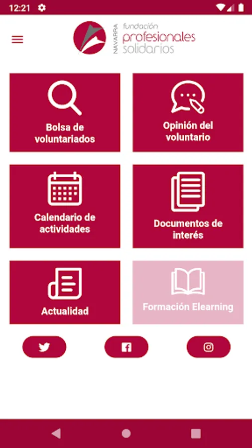 The application of the Solidarity Professionals Foundation allows volunteers to find and sign up for volunteers, as well as check the latest news of the Foundation or view the documents of interest available and upcoming activities.