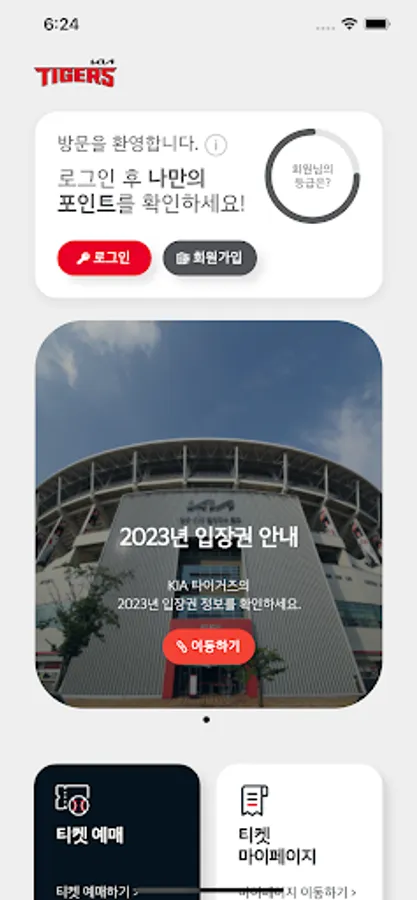국내 최고의 명문구단, V11에 빛나는 KIA타이거즈의 공식 어플리케이션입니다. 멤버십 가입하고 타구장에서는 경험할 수 없는 다양한 혜택을 누려보세요!