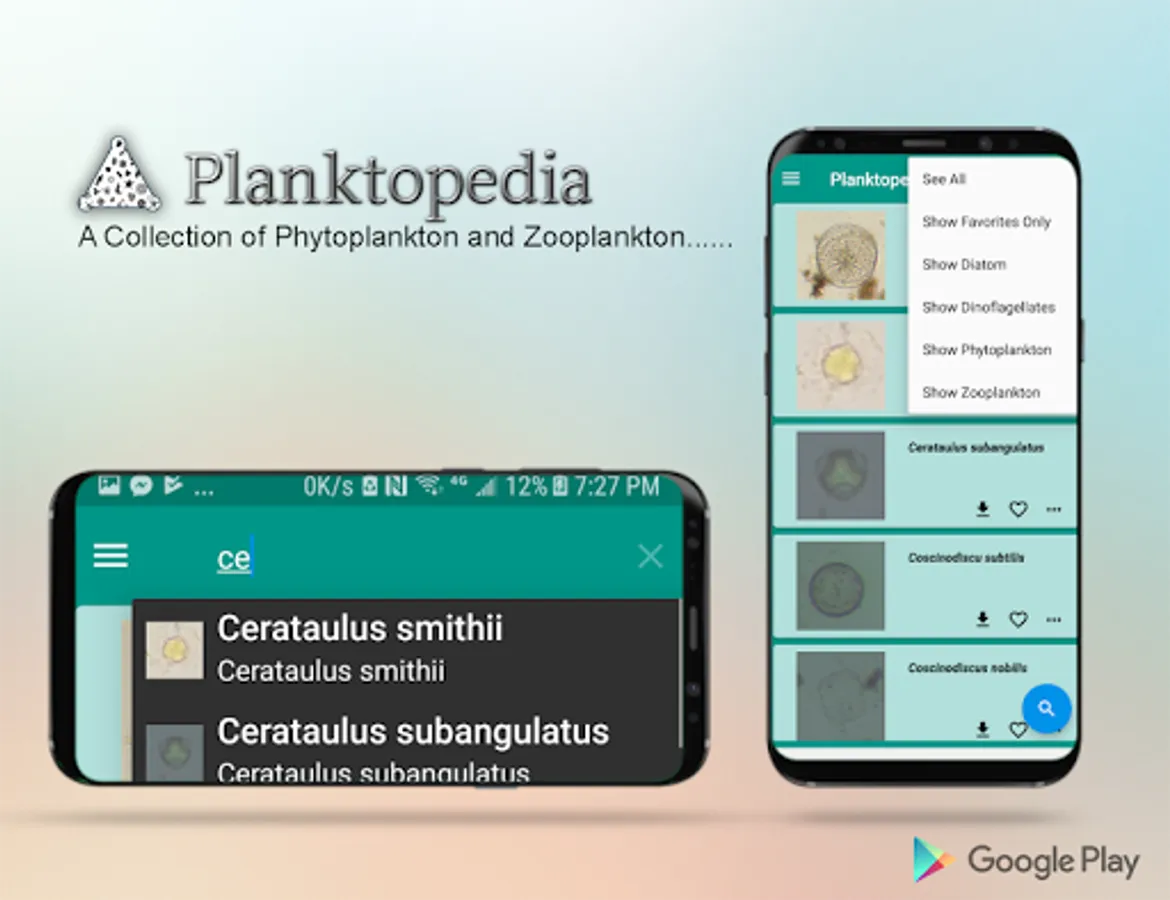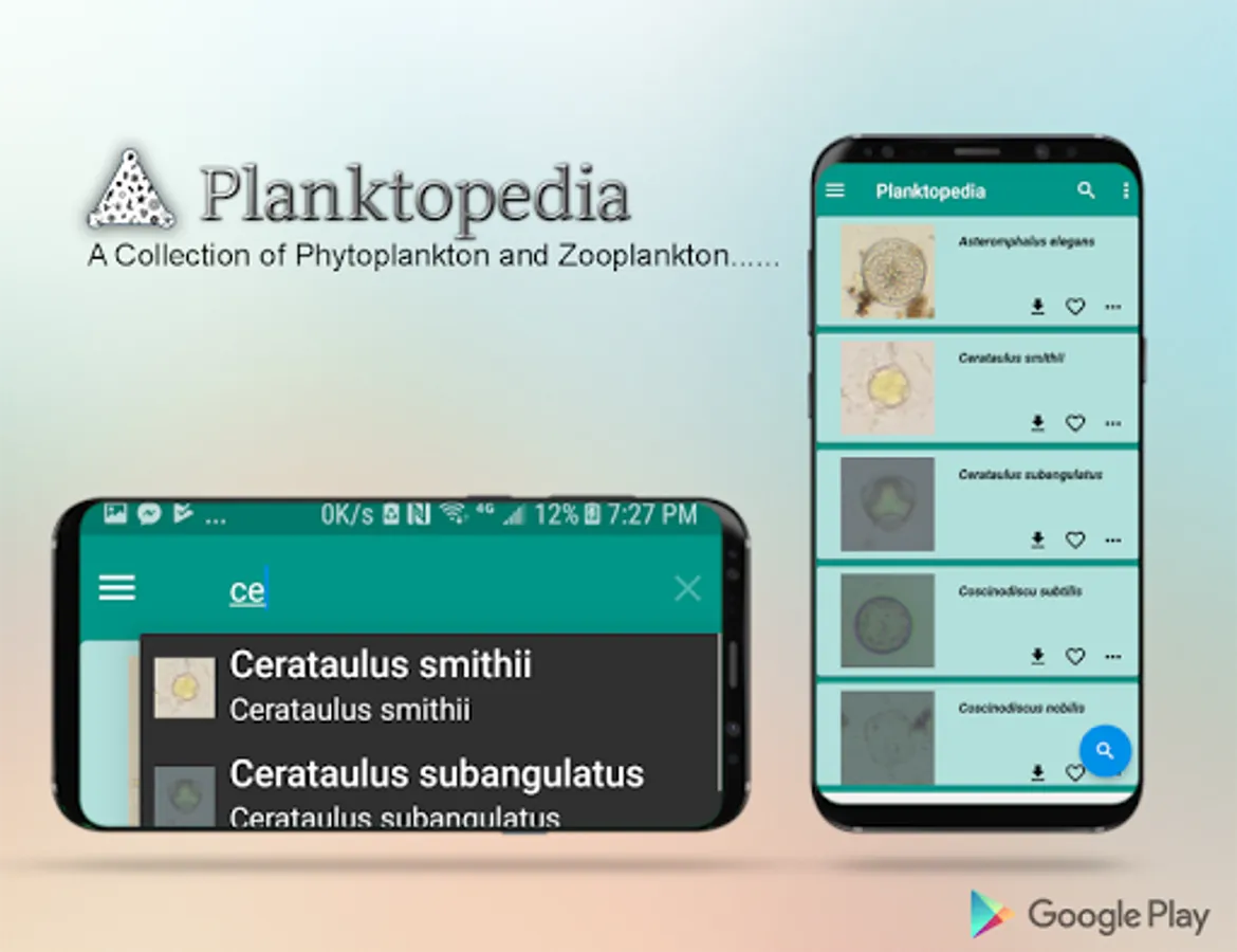 Planktopedia is a running project and this application is at it's demo version. You can search species by their scientific name, download pictures without Internet and search details about them on internet by one click on see more button.