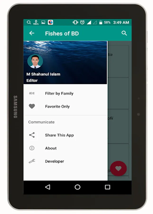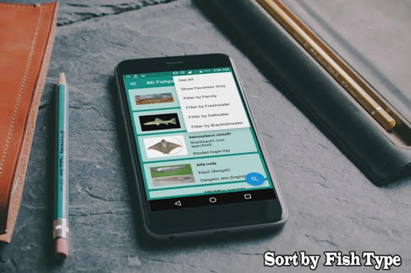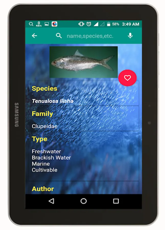 This app holds the scientific information about Fishes with their Family Name, Species Name, Common Name, Author, Picture, Occurrence, Type, Max length, Remarks etc.....