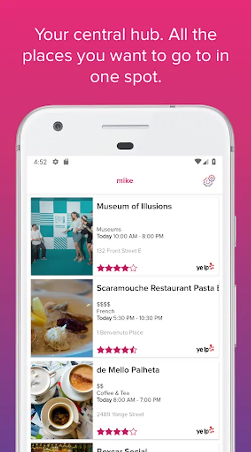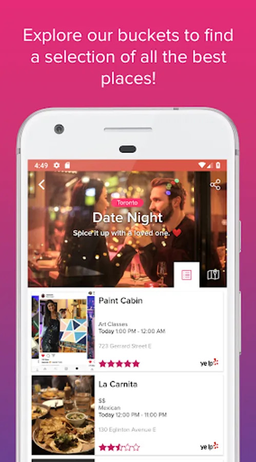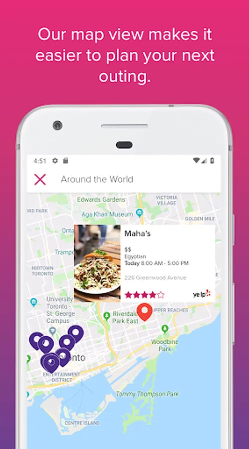 • View the best restaurants, bars, events, activities, and places nearby.