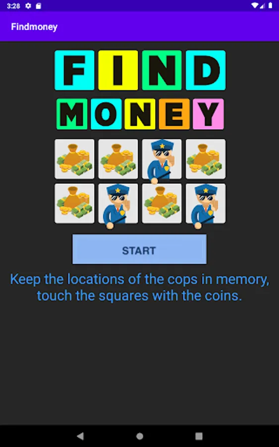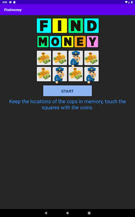 Keep the squares with the cops in your memory and tap and open the squares with the coins. Strengthen your memory. Findmoney is a memory game designed to improve and strengthen memory.