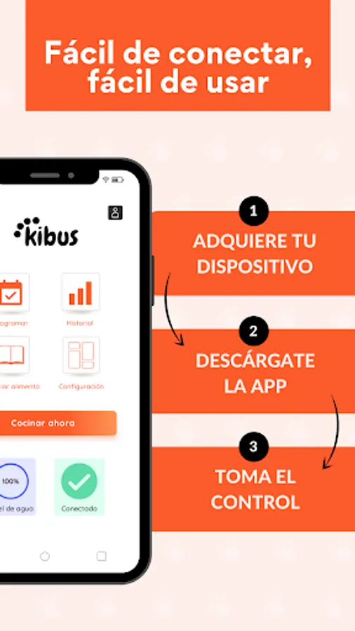 With Kibus you can offer your dog a freshly prepared healthy and natural food. Without complications. Expand your options with the official Kibus app. Control your Kibus device wherever you are. Updated status - you will know the status of your device at any time you want. Connection and update at all times. Instant cooking - take advantage of the cooking option to prepare food for your dog instantly. Schedule - use scheduling to have your dog's meals always ready at the time that suits him best. History - keep the history of the meals. Keep track of your dog's weight with the food log.