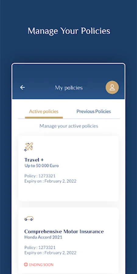 3. Manage all your insurance policies such as car, life, home in simple clicks
