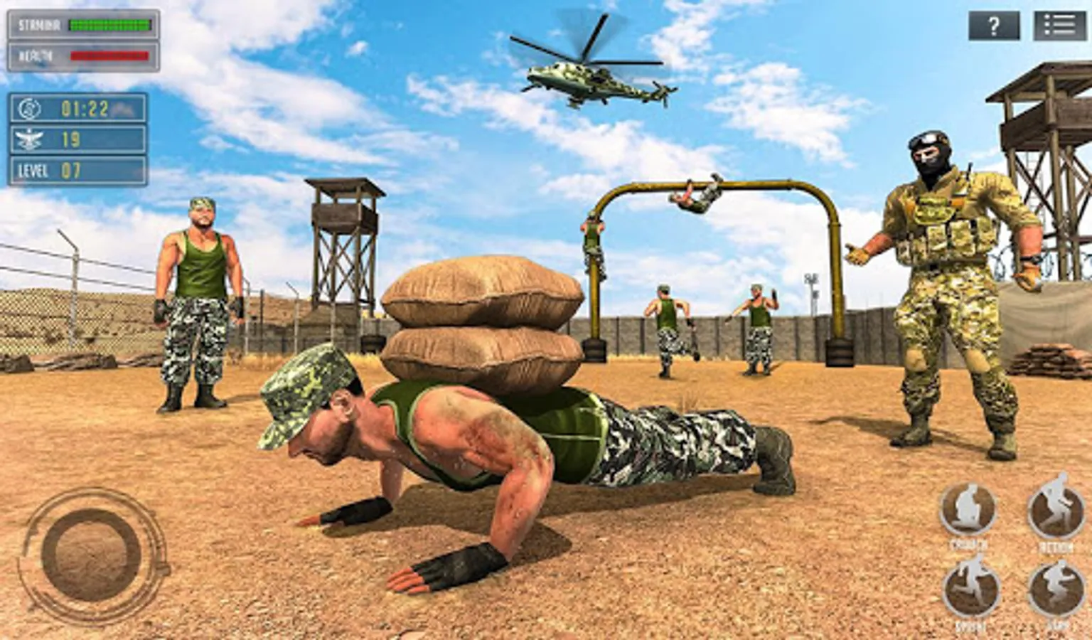 - Realistic military training with swimming, jumping, stealth, rolling and more in training games.