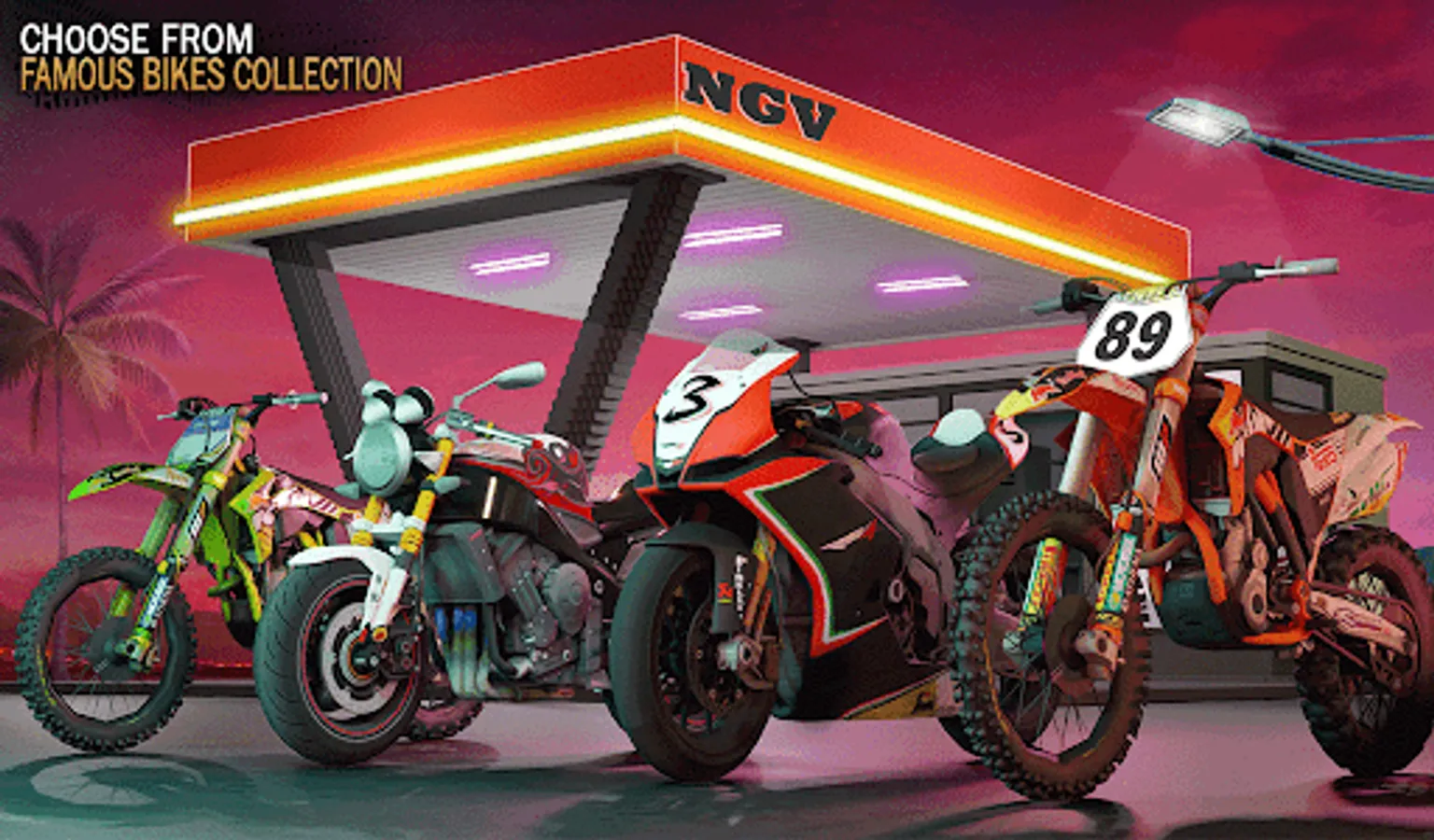 Have you ever wanted to ride a motorcycle in real life? Great! It's about time to test your skills and decide on the motorcycle category in new games you would choose – extremely fast superbike, cafe racer, heavy bikes, epic chopper motorcycles or modified high-performance versions of off-road motorcycles! Every bike has its own individual extras: total lives, near miss bonus, high-speed bonus or wrong way bonus.