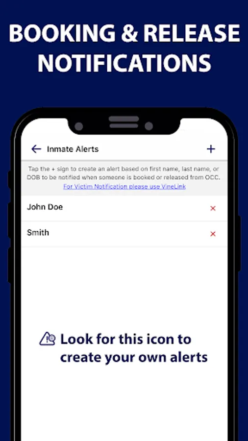 Ability to create alerts based on name and/or date of birth to get an app notification when someone is booked or released