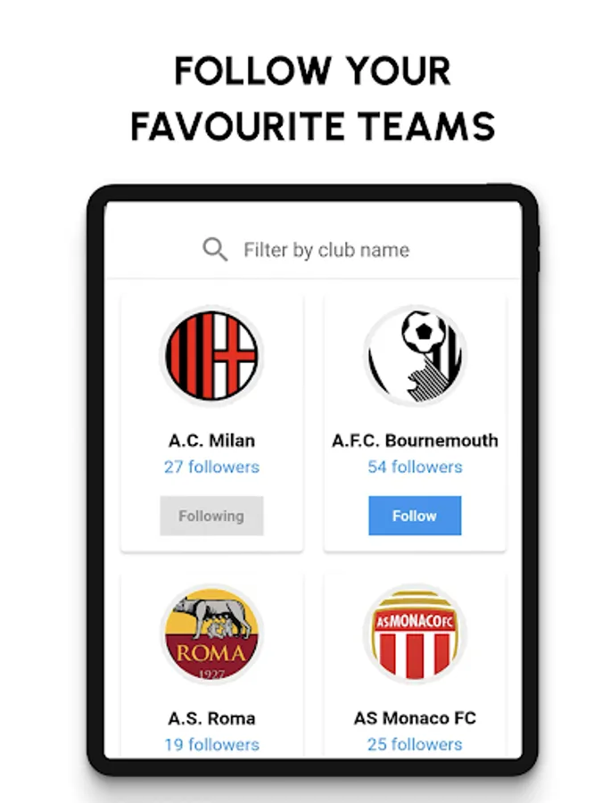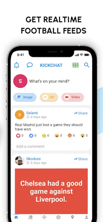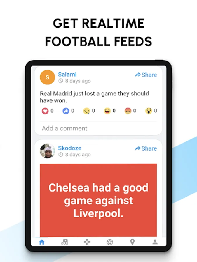 Get realtime posts and feeds from football fans and people you follow. You can add reactions, comments and share posts to other social networks.