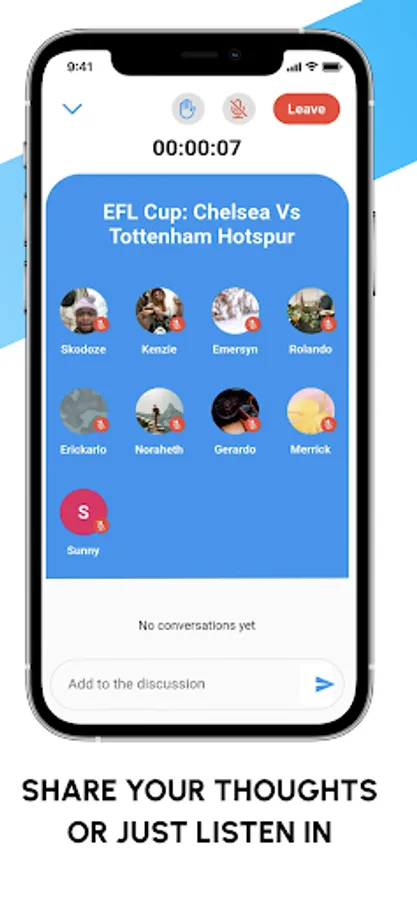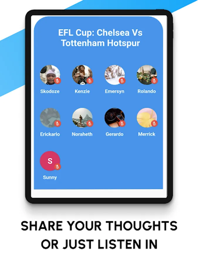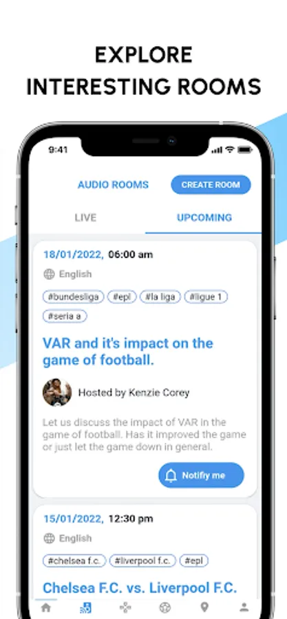 Join interesting audio rooms and listen or share your thoughts on your favorite teams, matches, game events, refereeing decisions, players, managers and so much more.