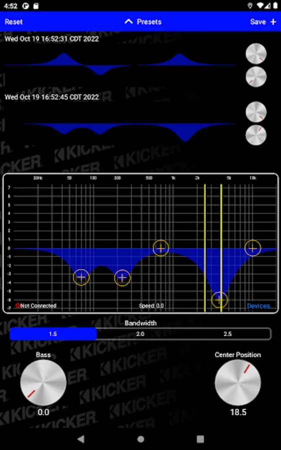 KICKER® FlexTune™ works seamlessly with your phone, tablet and your new KICKER audio system to personalize your sound. Increase the clarity? No problem. Want more KICKER bass? Turn one knob. Easily tweak the audio with a touch of the graphic five-band equalizer, right from your phone or tablet screen.
