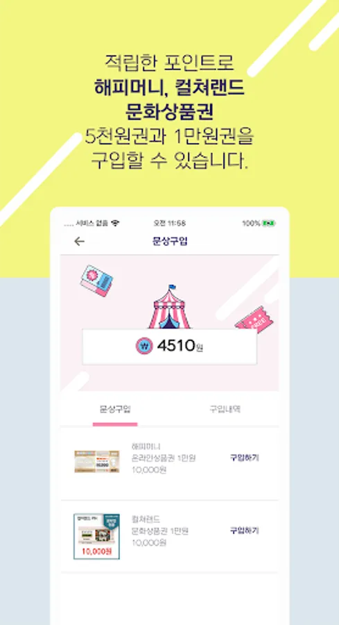 Happy Money and Culture Land cultural gift vouchers can be used to purchase points.