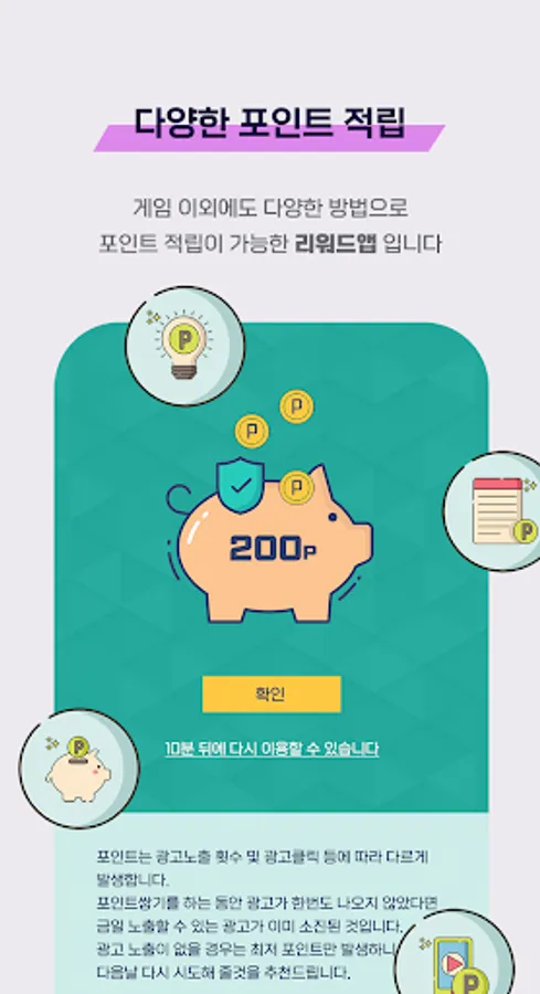 We have applied all the points earning methods that you can do with your mobile phone, from earning using the point accumulation tab button to earning video advertisements and earning news viewing.