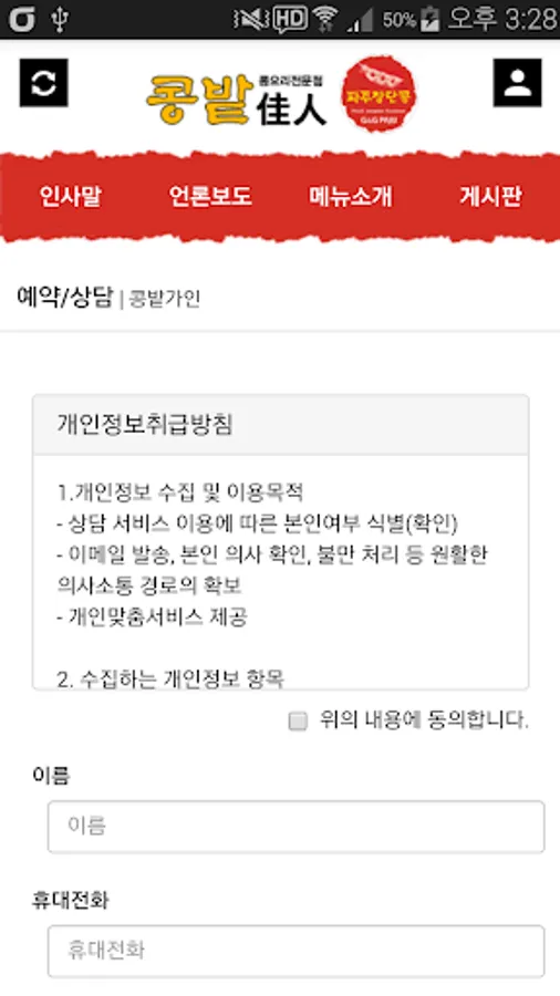 콩밭은 한국 전통건강식품의 고급화 및 대중화에 앞장서서 끊임없는 연구를 통해 콩 요리 전통의 맛을 개발하고, 표준화하여 최고의 맛과 최상의 서비스, 청결한 주방 시스템으로 계룡시 최고의 한국 전통식당으로서 정갈하고 맛깔스런 두부요리를 선보이고 있습니다.