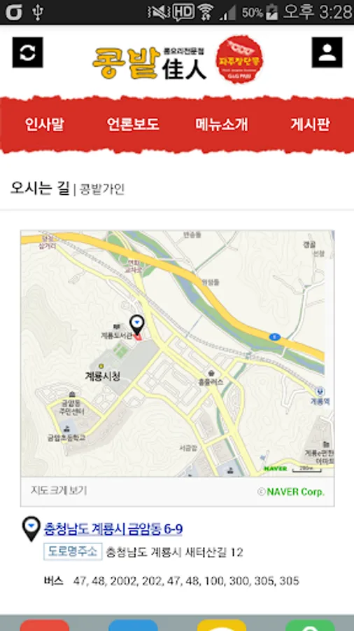 - 콩 요리 전문점 콩밭은 전통 한식전문 가족식당입니다. 편안하고 아늑한 실내와 맛깔스런 메뉴, 정갈한 반찬류, 정성을 다하는 친절, 위생, 청결, 깨끗함이 계룡시 콩밭의 자랑입니다.