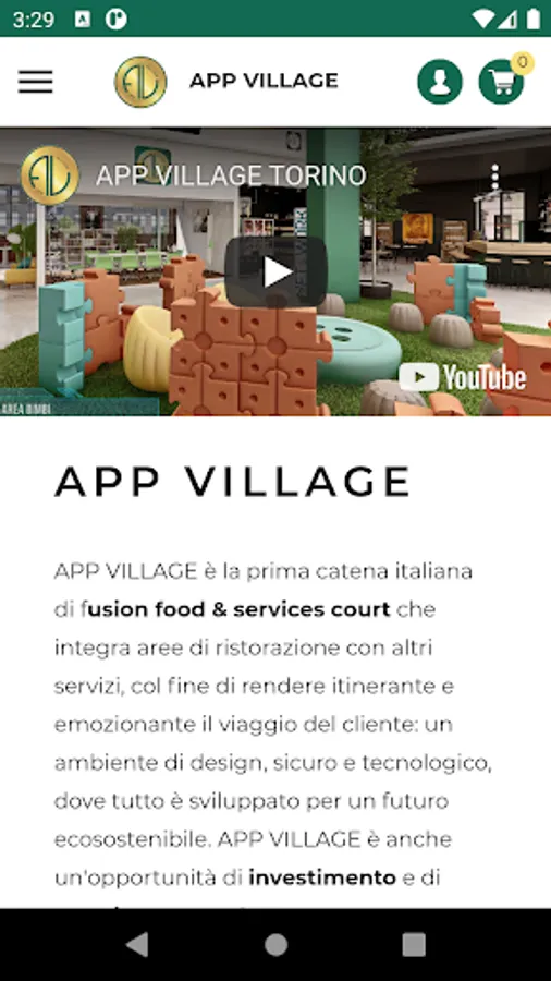 APP VILLAGE is the first Italian chain of fusion food & services court that integrates catering areas with other services, with the aim of making the customer's journey itinerant and exciting: a design environment, safe and technological, where everything is developed for the future eco friendly. APP VILLAGE is also an opportunity for investment and personal growth.