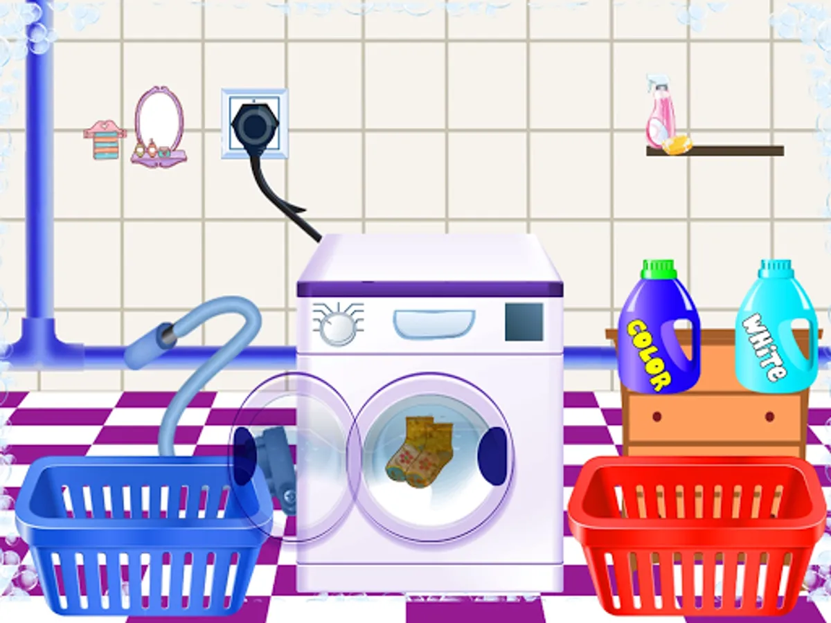 Hey friends! help new mommy in completing chore of the day, wash dirty clothes and prove yourself that you can manage the laundry in the absence of your mom on a laundry day. Take the responsibility and get the laundry done.