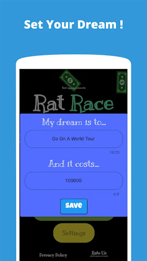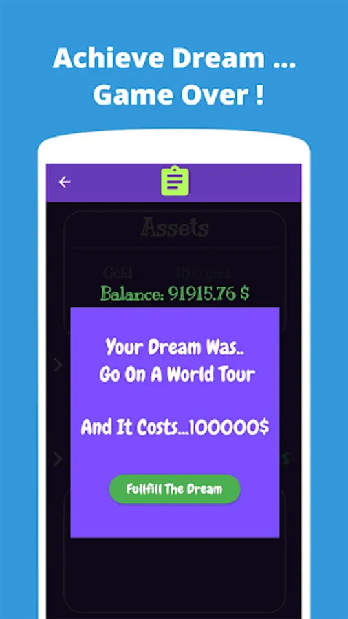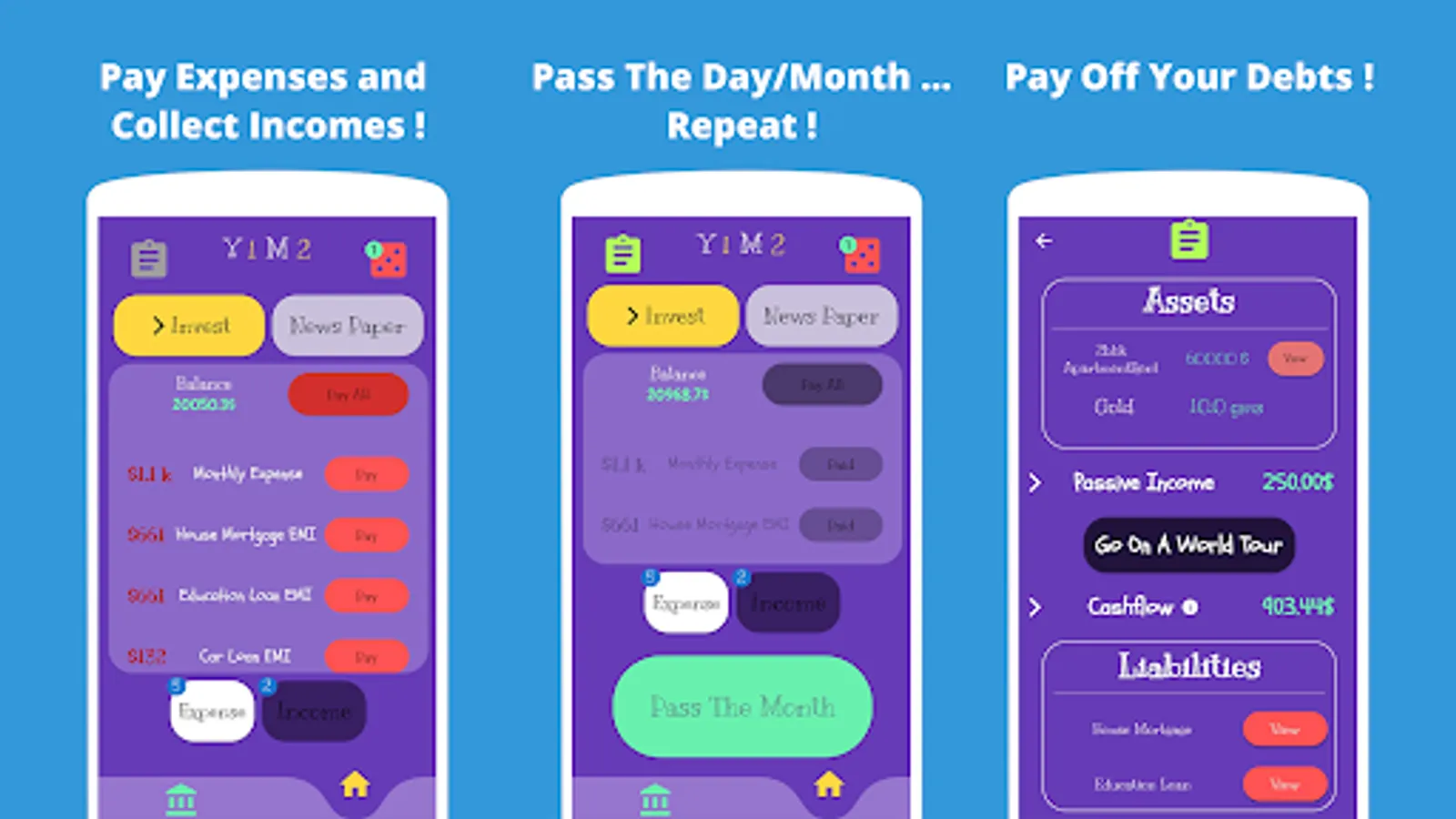 This game allows you to simulate a RAT RACE where you will have loans to pay, bank to deposit and gain interests and much more investing options.