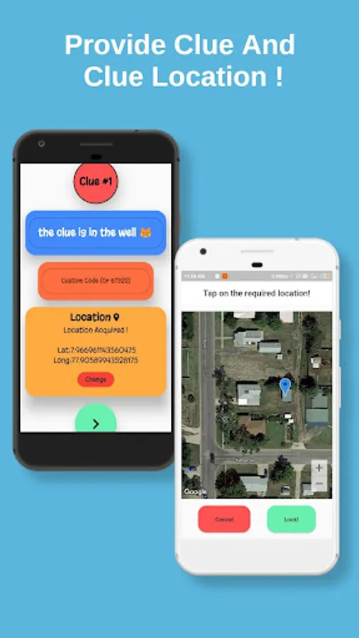 Do you usually write clues and hide them while playing treasure Hunt? Then you're definitely a GAME MASTER ! Using this application you can write clues (even very long!) and it gives you codes which you will hide in the places where the clue leads(using hide clues option). Post the game on the cloud and give players, the GAME CODE.