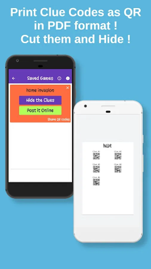 SO PRINT THE QR-CODES CUT THEM HIDE THEM AND LET THE PLAYER SCAN THEM !