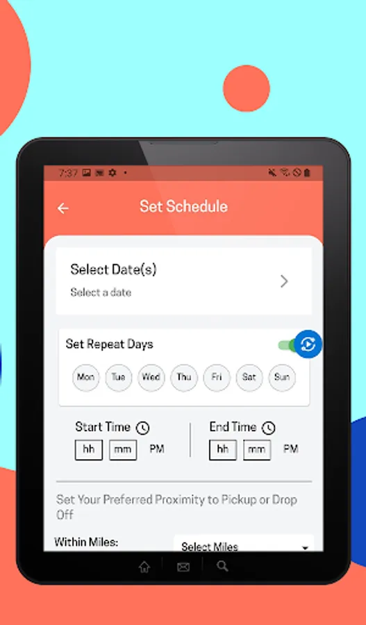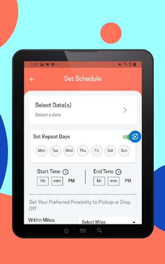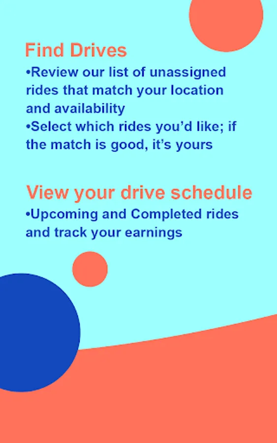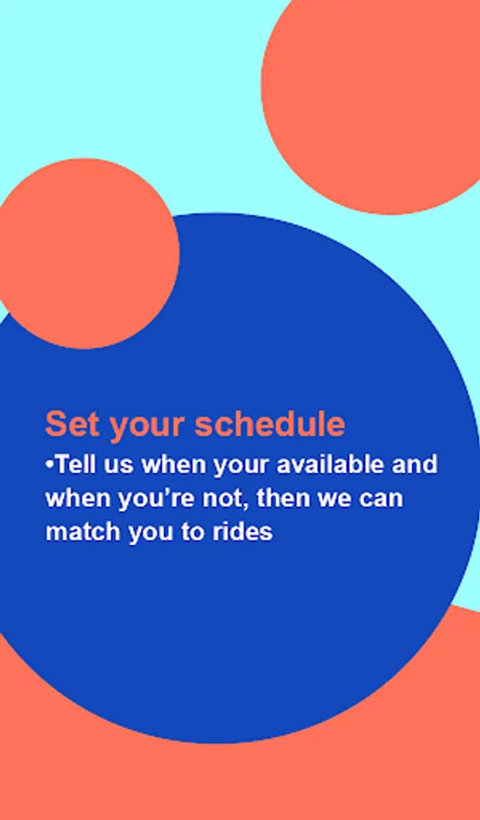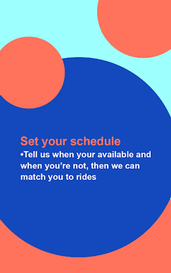 Once you complete the application and interview process, if you are approved, you’ll use the app to complete your public profile that we’ll share with parents whose children you’ll be assigned to drive. Additionally, from your home screen you’ll be able to set up you schedule of available times to work, any exceptions like doctor’s appointments or vacations. It’s where you will review the list of unassigned ride requests and select the ones you’d like to drive and check your calendar to stay on top of your assigned rides.