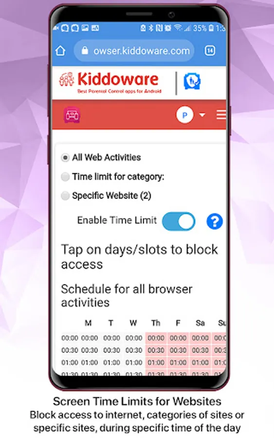 ⏲️ Applies screen time limit for internet access or a specific website or category of websites.