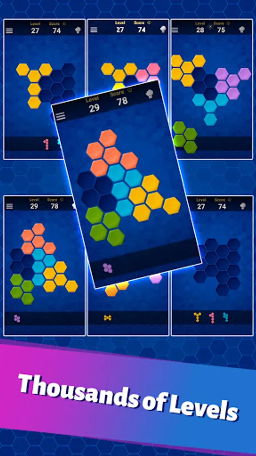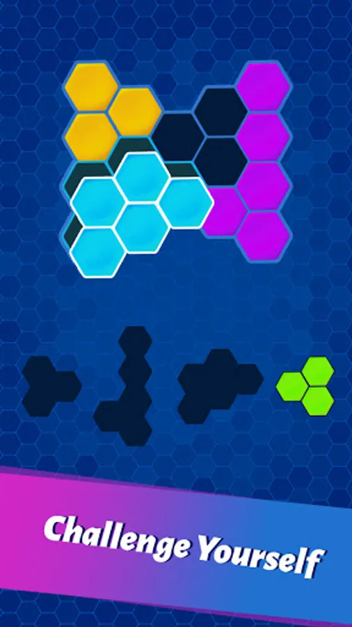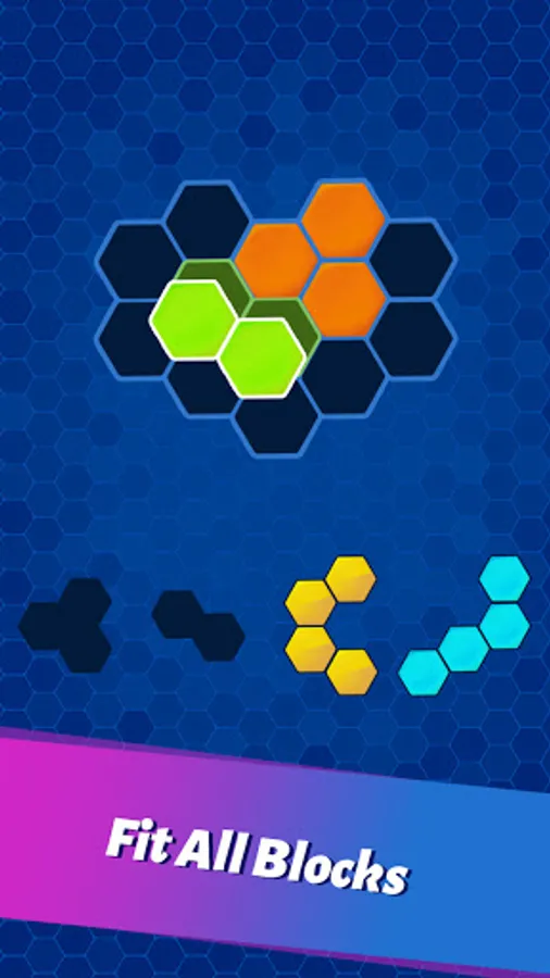 • Drag the hexagonal blocks and fit them all into the frame (like tangram).