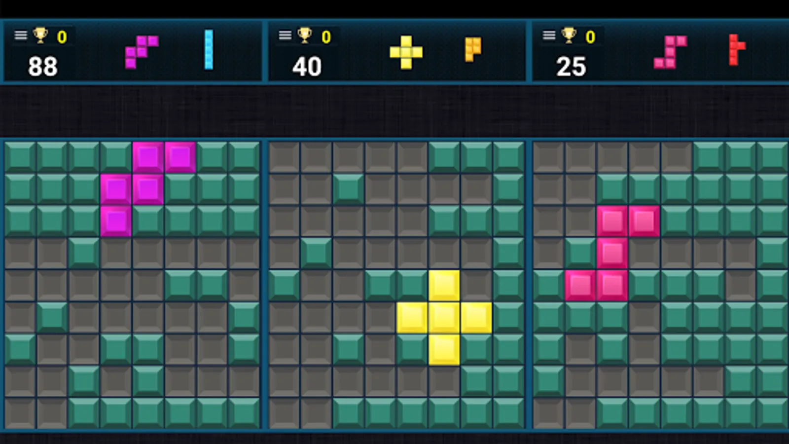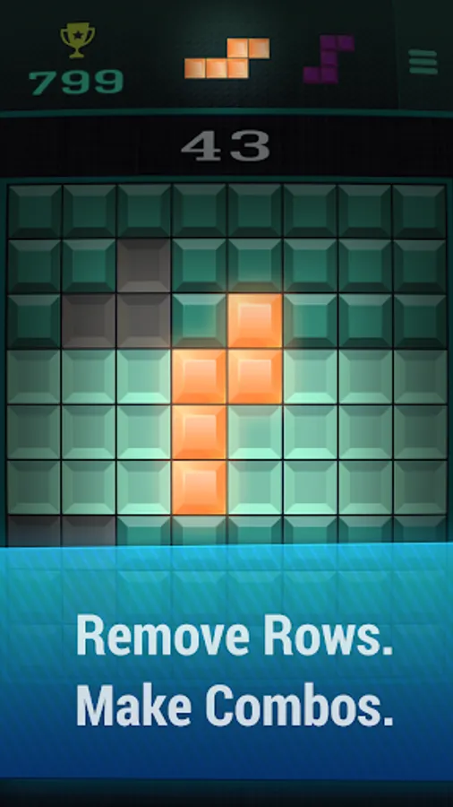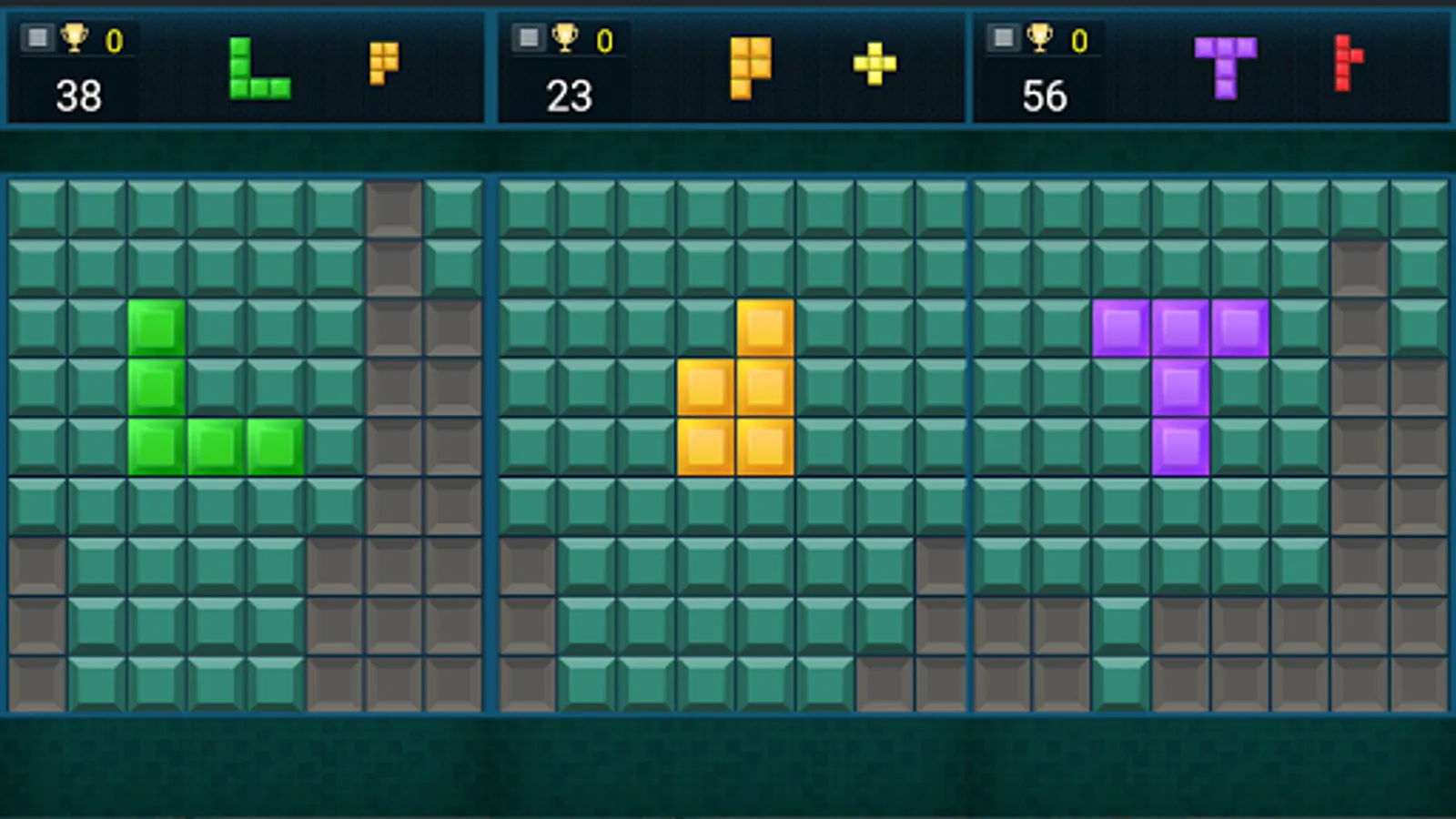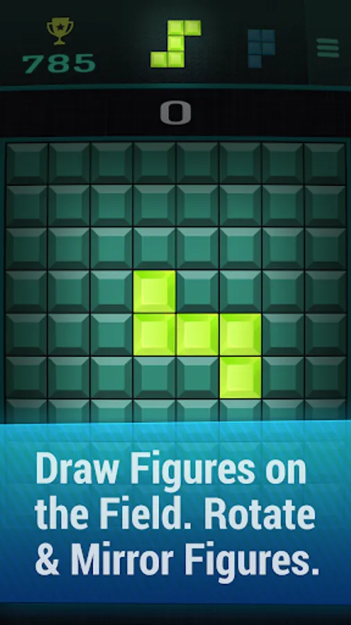 Select bricks of the shown figure shape (any rotated/mirrored version) to remove it from field. Clear row to make new bricks available. Challenge other gamers in pursuit of highscore.