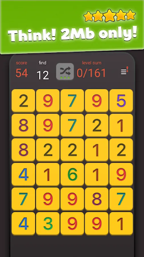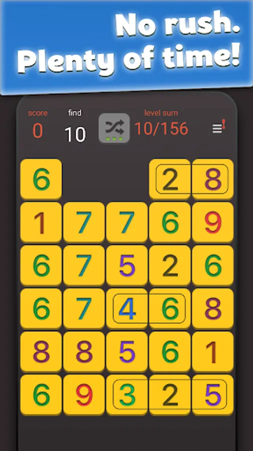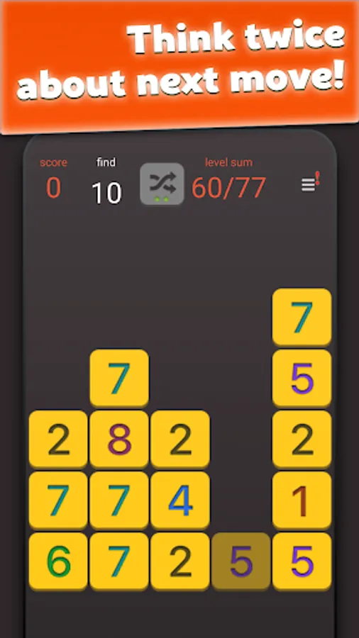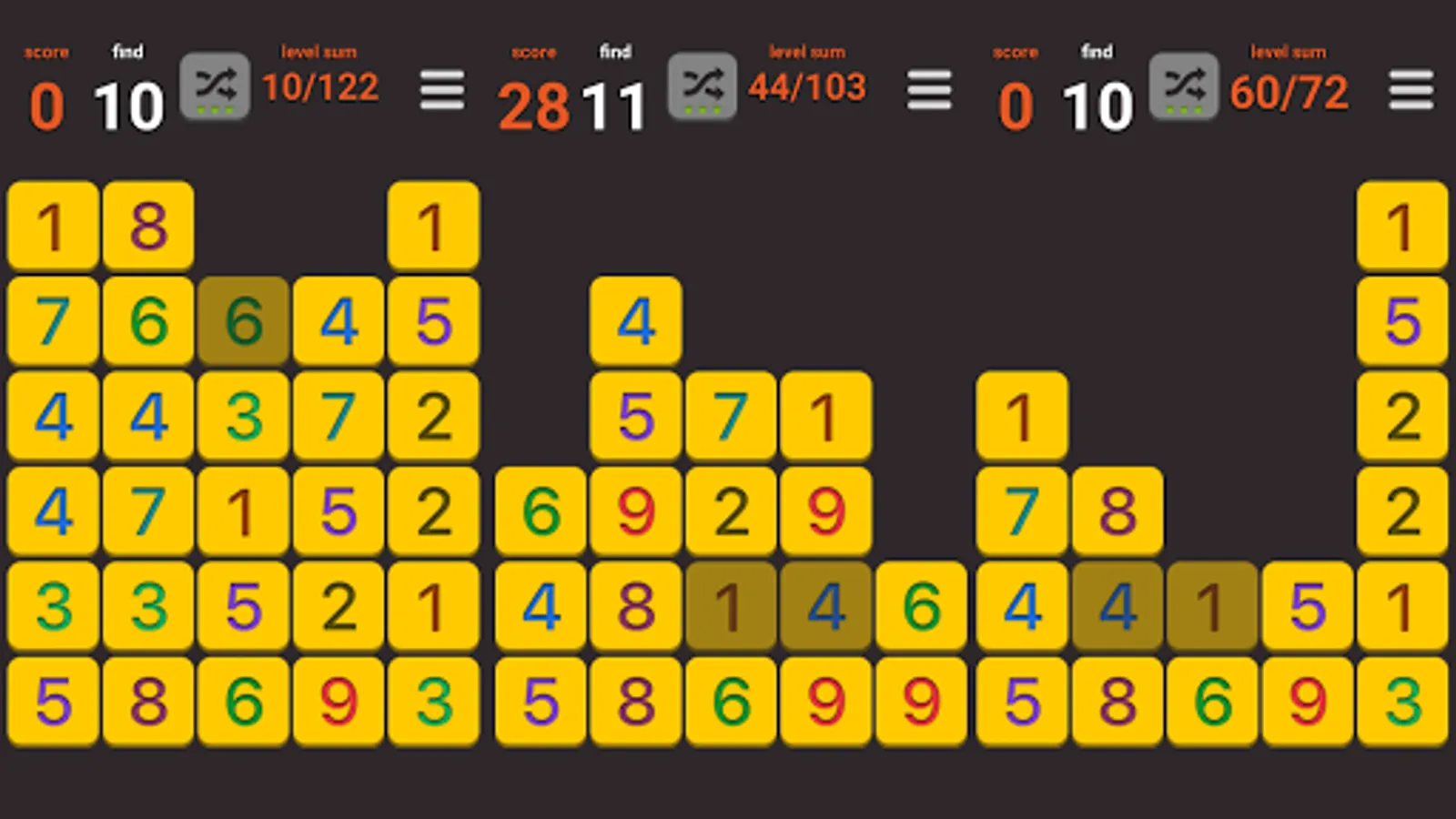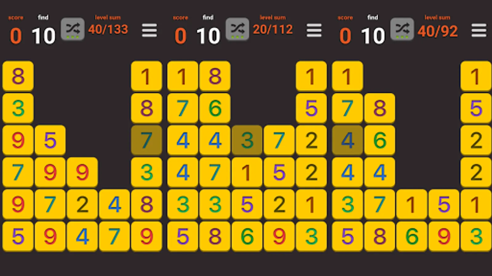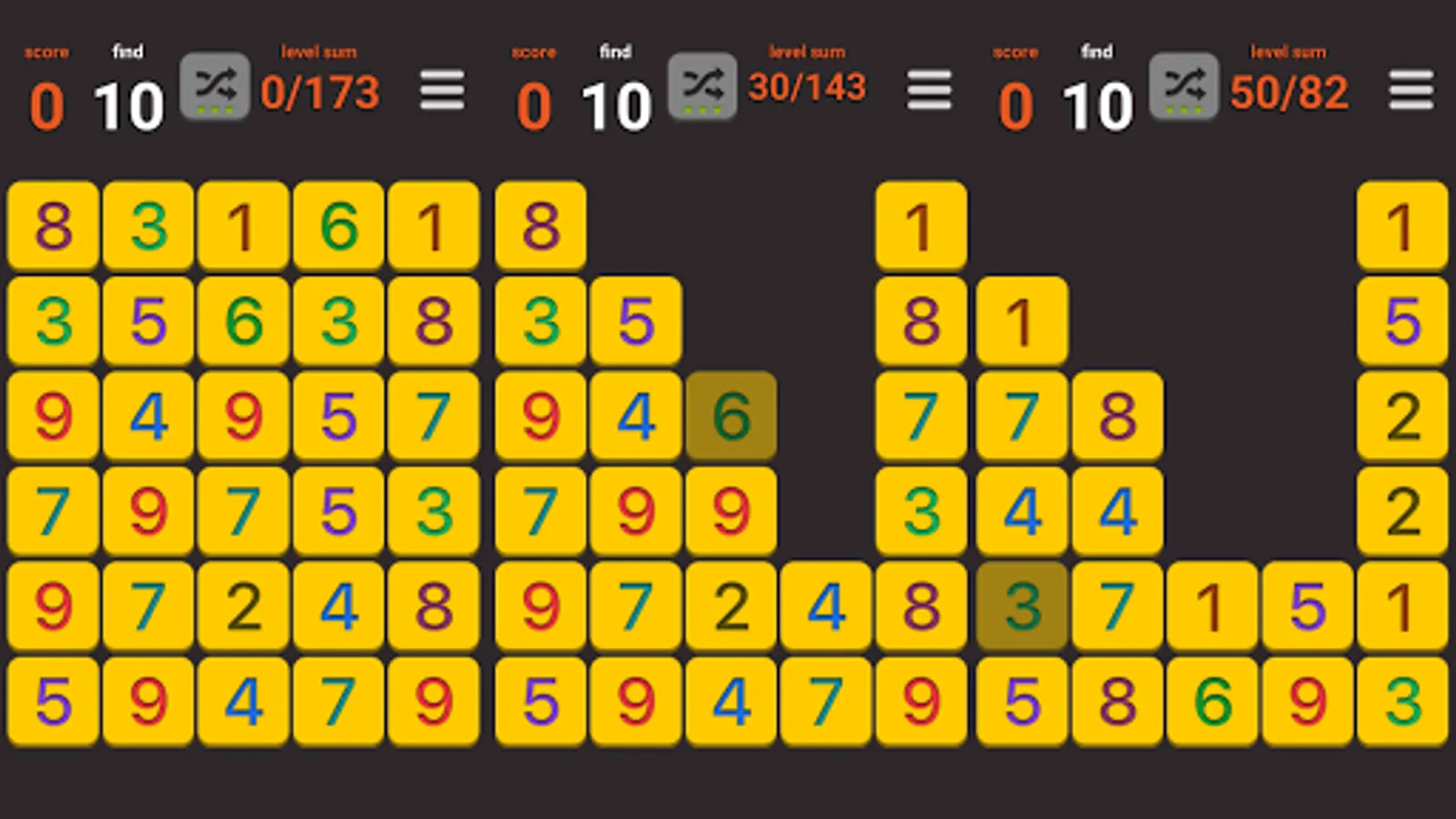 - If there are no more moves left and the sum of all collected sums is greater than the sum of numbers left on the field, then you have completed this level and can proceed to the next one.