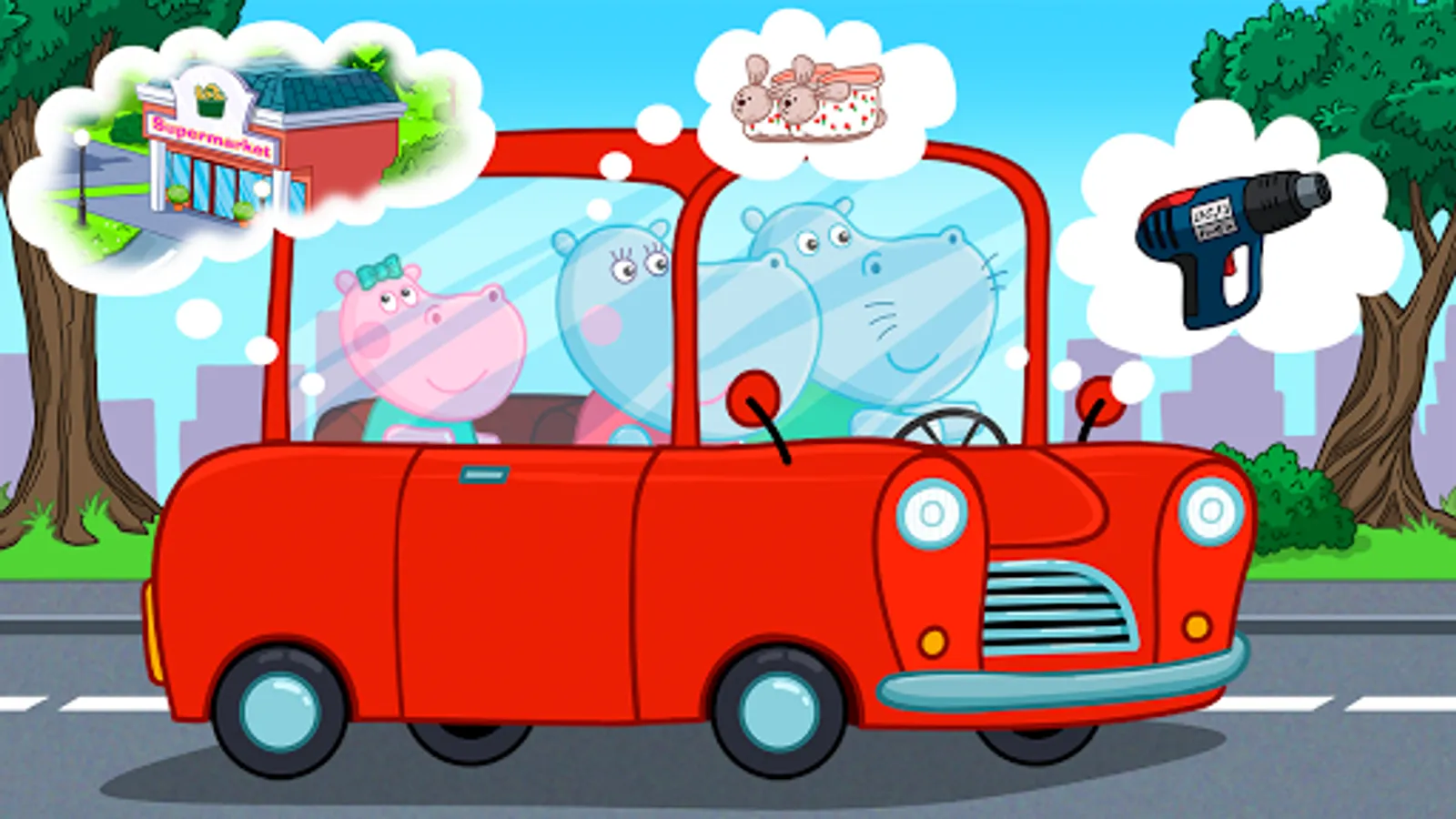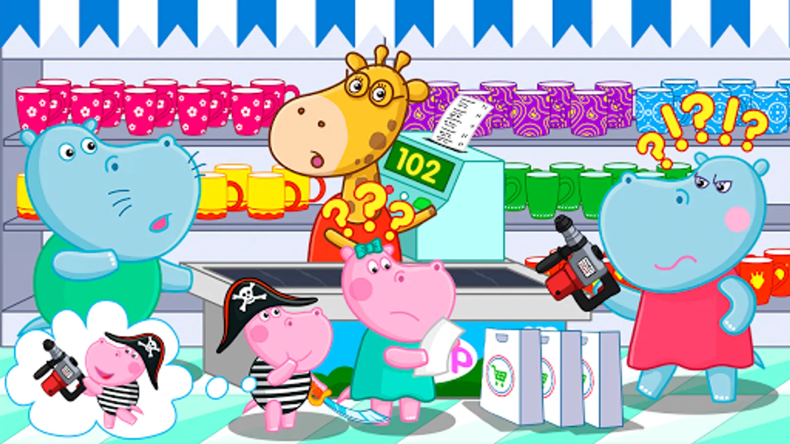 Then Hippo with her daddy and little brother go to the cashier and pay for the goods. Afterall you will meet Mommy, who will check the shopping list and all you have bought. And do not buy anything extra. Collect all 5 stars and Mommy will be happy!