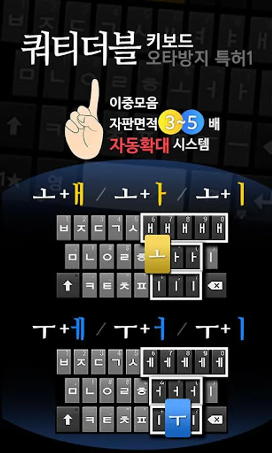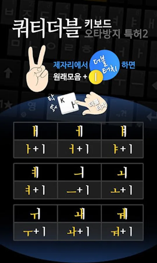 2. The collection of 21 letters in both Hangul touch two shots, pushing (Swype) roneun is one stroke can be entered.